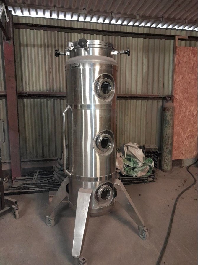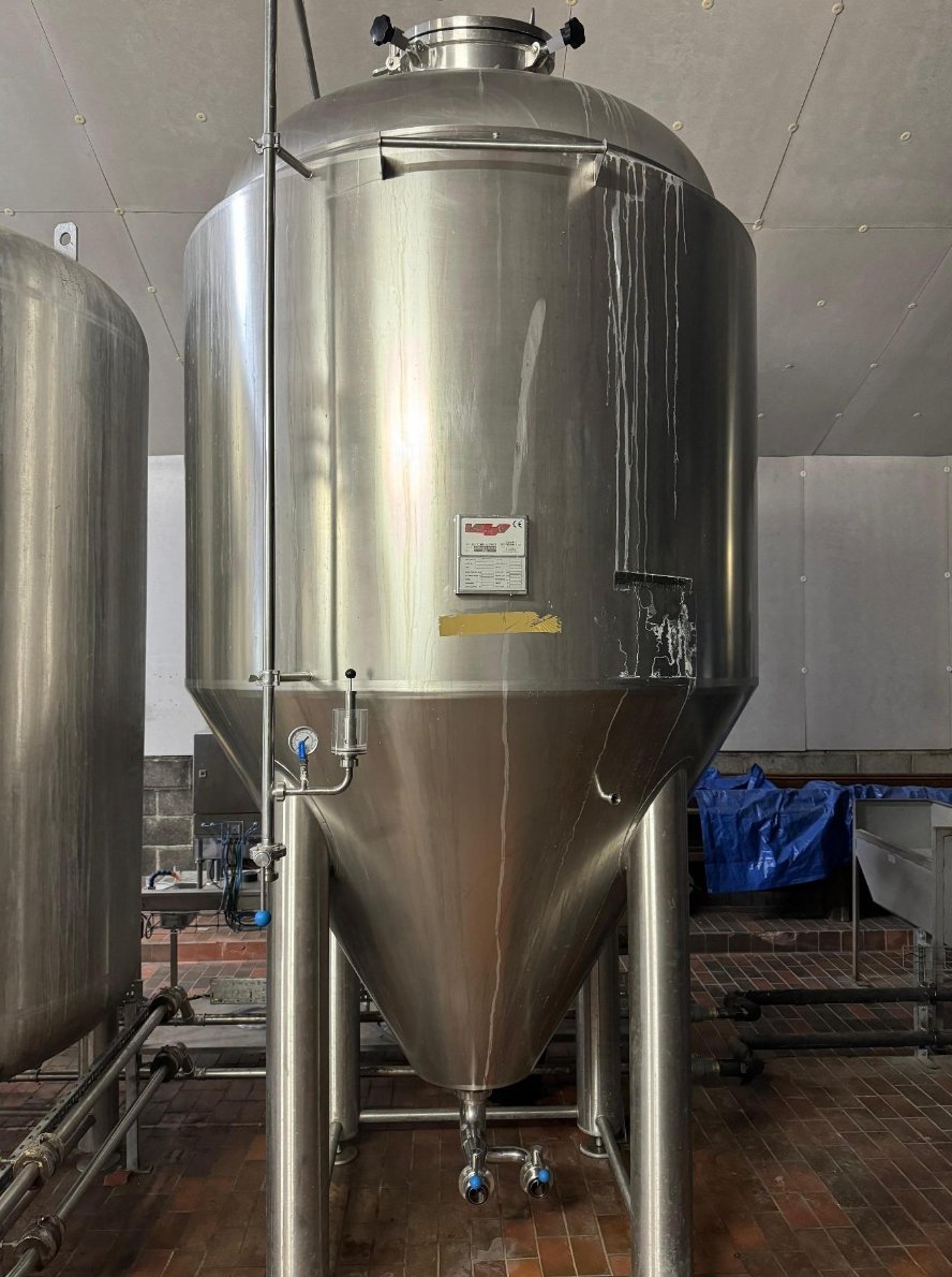 Conical fermentation vessel in stainless steel, rated to 3 bar. Excellent working condition — cone bottom for clean yeast recovery.